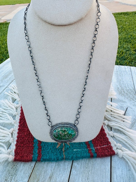 Sterling Silver 18” Link Chain & Turquoise Necklac