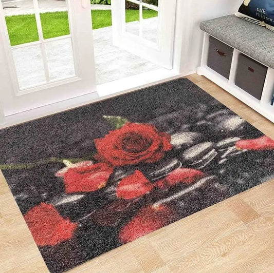 BK Red Roses Non-Slip Absorbent Welcome Door Mat