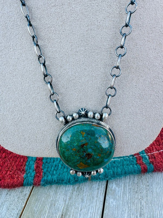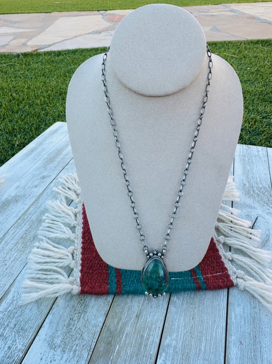 Sterling Silver 18” Link Chain & Royston Turquoise
