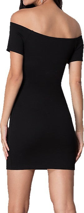SHORT SLEEVE DRESS WITH ASYMMETRICAL RUFFLE