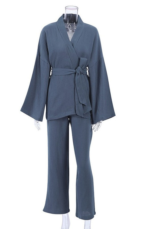 Women Fashion Lace 2PCS Wide-Leg Pants Set