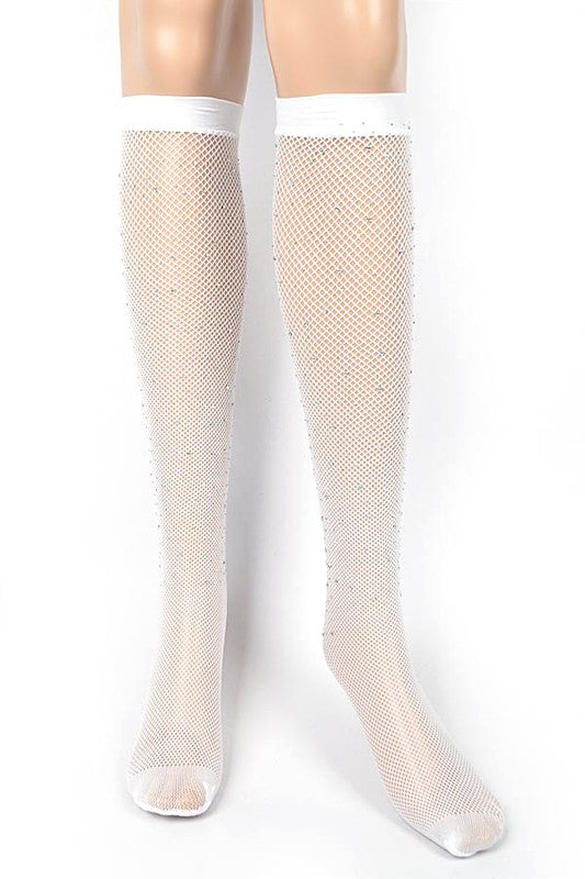 Rhinestone Fishnet Knee High Socks