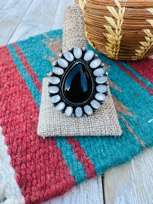 Hand Crafted Mother of Pearl, Onyx & Sterling Silv