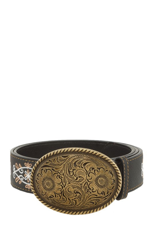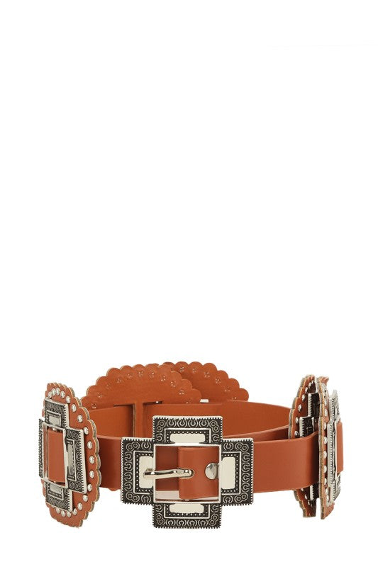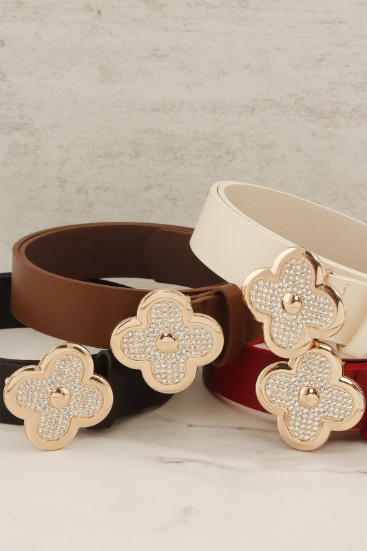 Pu Leather Metal Plated Rhinestone Clover Belt