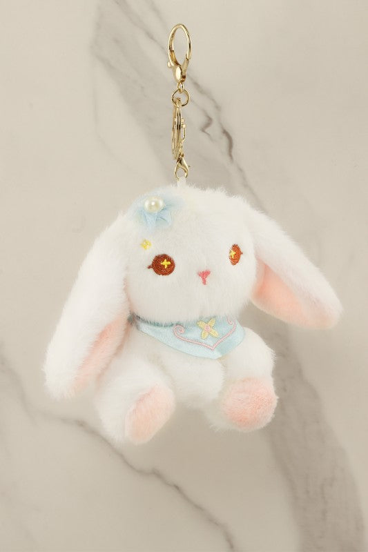 Adorable Fluffy Bunny Keychain with Pearl Accent