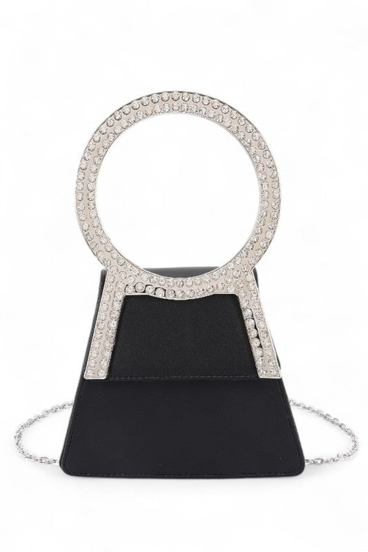 Pearl Rhinestone Beaded Top Handle Clutch Bag