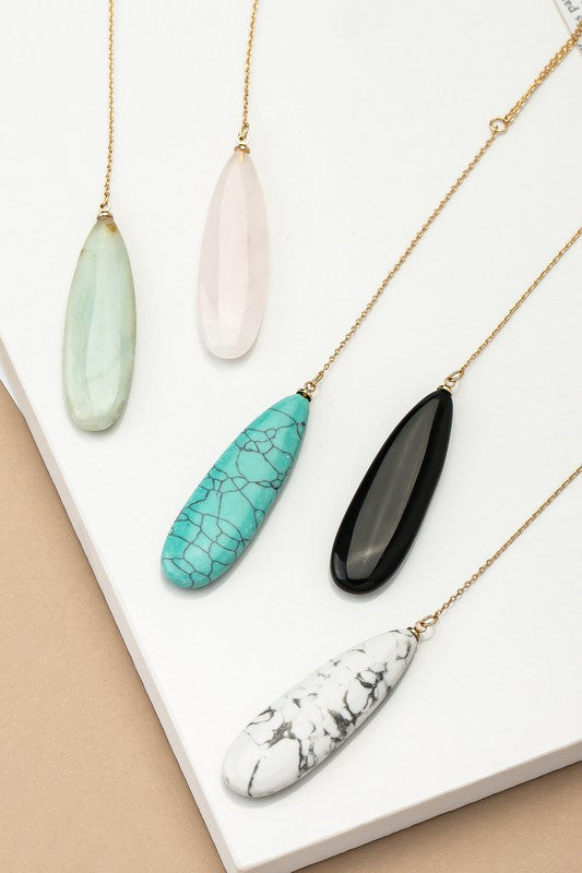 LONG BAR NATURAL STONE PENDANT NECKLACE