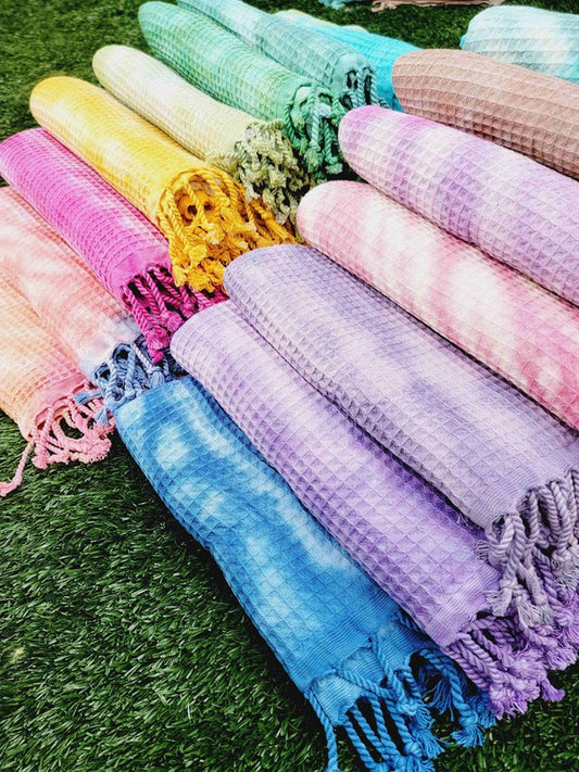 Waffle Towel,Throw Lightweight - Tabacco Tie Dye