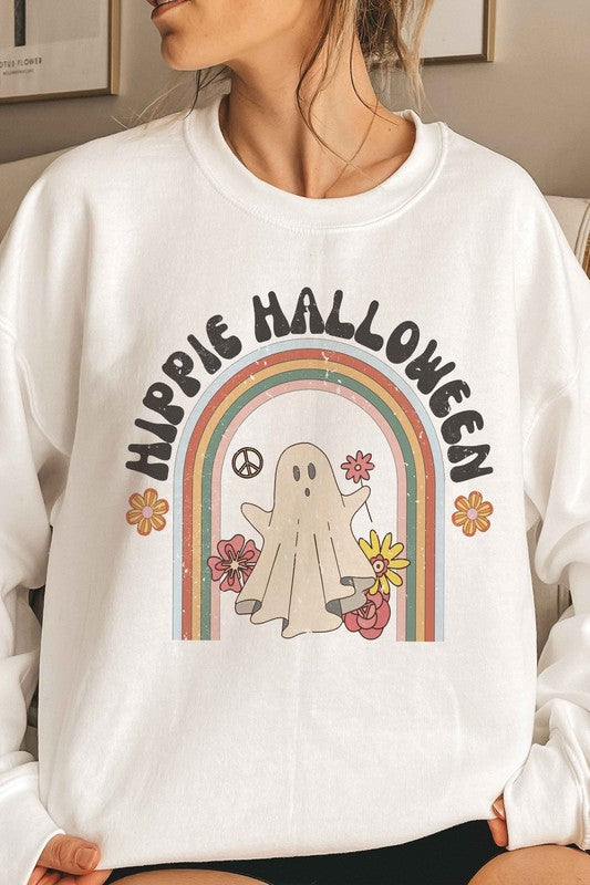 HIPPIE HALLOWEEN GROOVY GHOST Graphic Crewneck