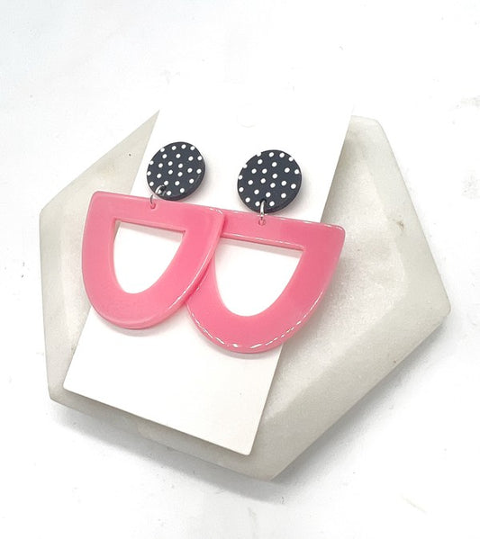 Pink Polka Dot Deco Acrylic Earrings
