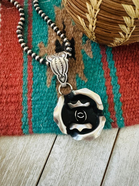 Navajo Hand Stamped Sterling Silver Rose Pendant b
