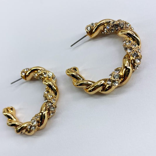 Twisted Metal with Rhinestones Hoop Post Earrings