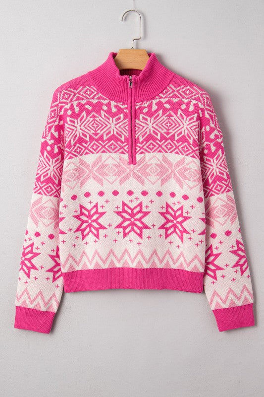 Geometric Christmas Snowflake Quarter Zip Collar S
