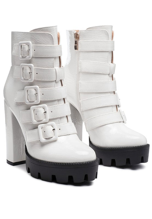 OUZAKI PATENT PU HIGH BLOCK HEELED BOOT