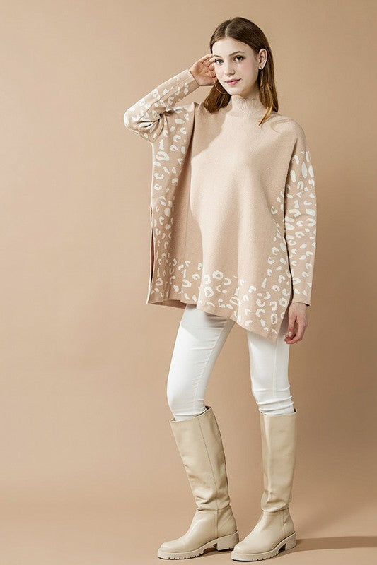 Oversized Mock Neck Leopard Print Sweater Tunic