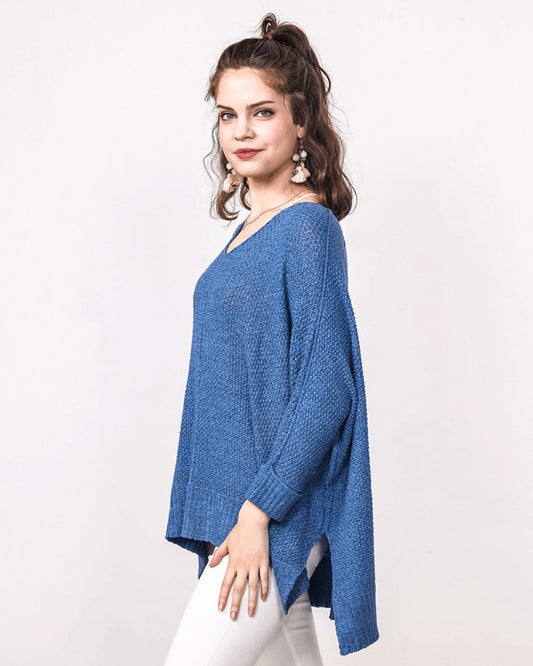 Mock Neck Balloon Sleeve Side Slit Sweater
