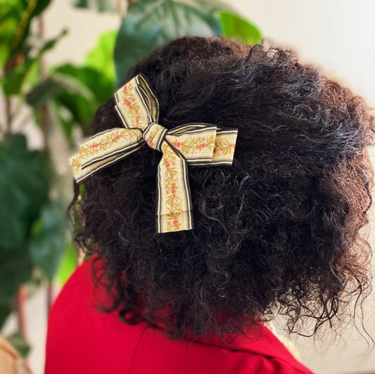 Parisian Embroidered Bow Barrette Set