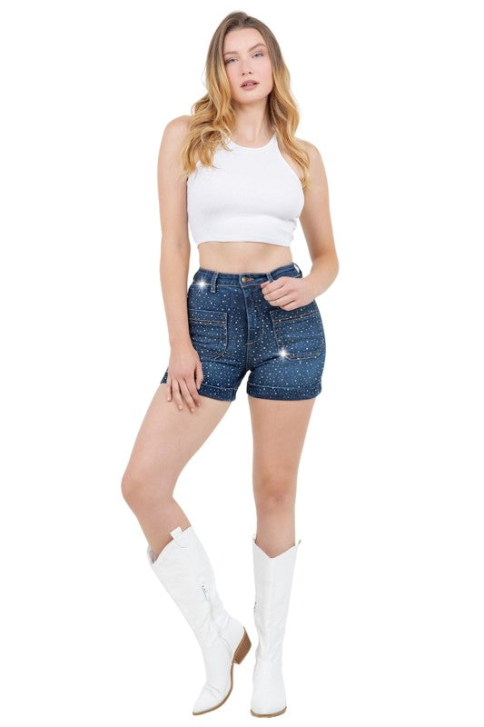 Beau Blue Rhinestone Denim Shorts