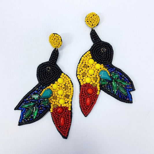 Beaded Hummingbird Colibri Multicolor Black Velvet