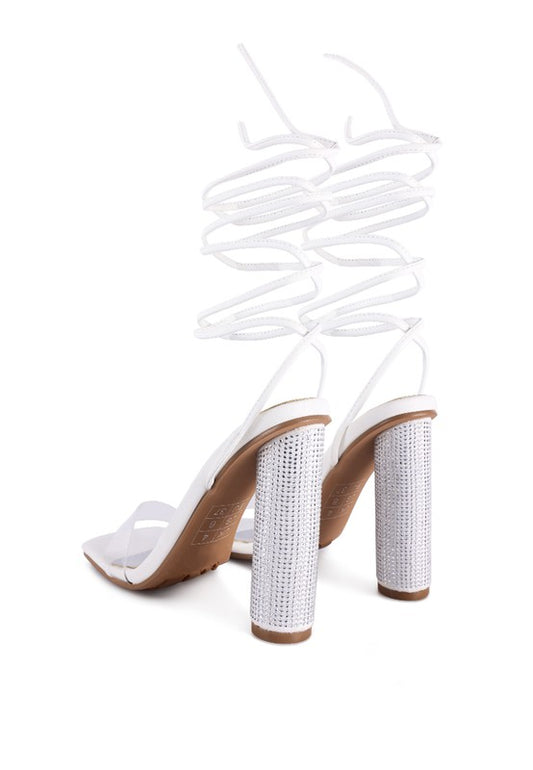 SHEENY CLEAR STILETTO LACE UP SANDAL