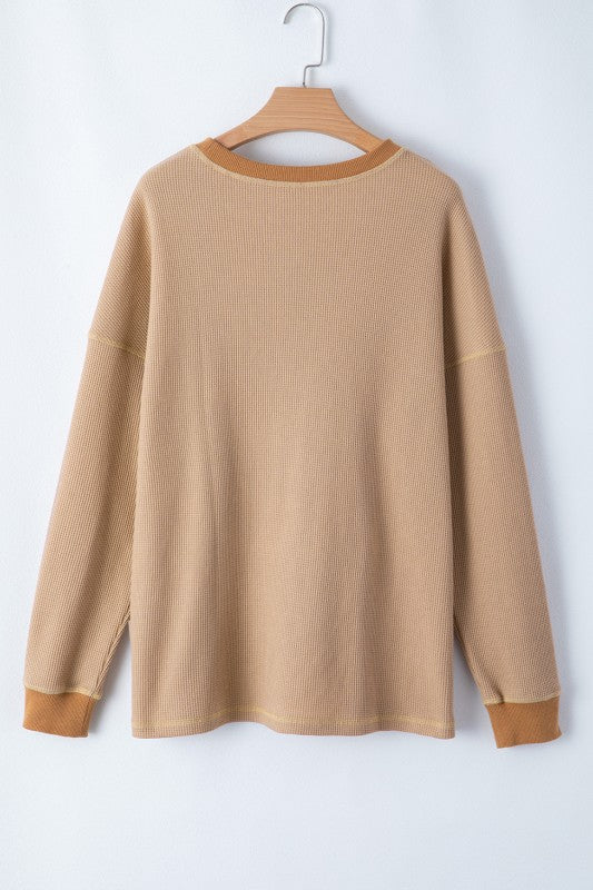 Stripe Waffle Knit Crew Neck Plus Size Sweatshirt