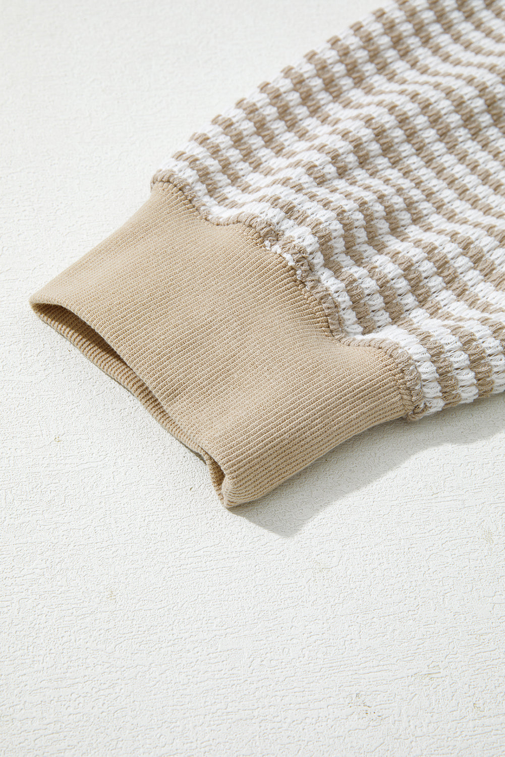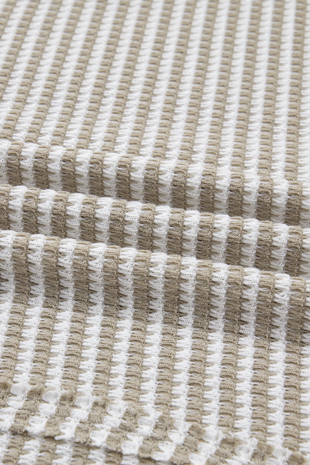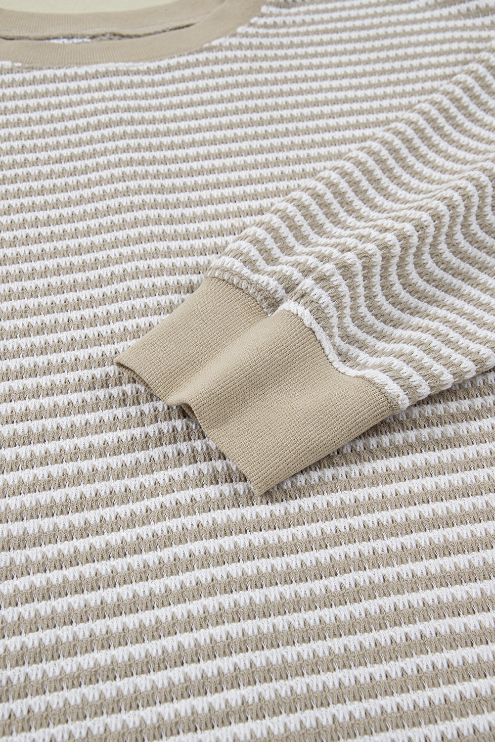Brown Stripe Plus Size Breathable Knit Ribbed Trim Long Sleeve Top