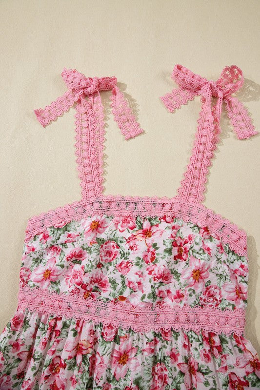 Floral Lace Tied-Strap Empire Waist Maxi Dress