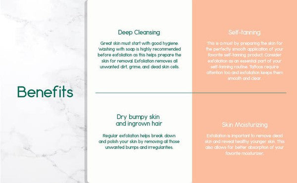 Deep Cleansing. Great skin must start with good hygiene. Washing with soap is highly recommended before exfoliation, as this helps prepare the skin for removal. Exfoliation removes all unwanted dirt, grime, and dead skin cells.