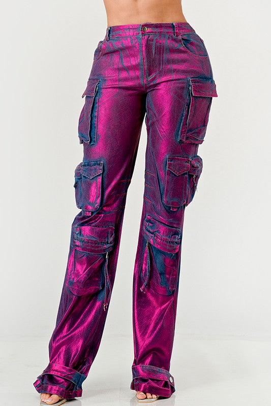 Acid Wash Frayed Cutoff Hem Straight Wide Pants