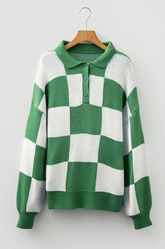 Checker Collared Long Sleeve Sweater
