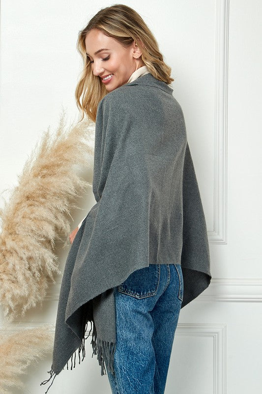 SOLID COLOR THICK SOFT SCARVES PANCHO WITH TASSEL