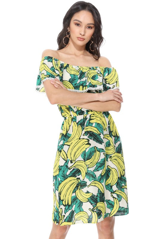 FLOWER PRINT DRESS SIDE RUCHED DRESS
