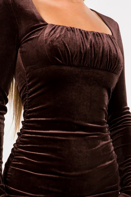 Women's Solid Velvet Mini Dress With Ruched Detail