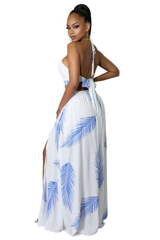 Women's Halter Neck Maxi Dress with Draped Skirt and Elastic Waist